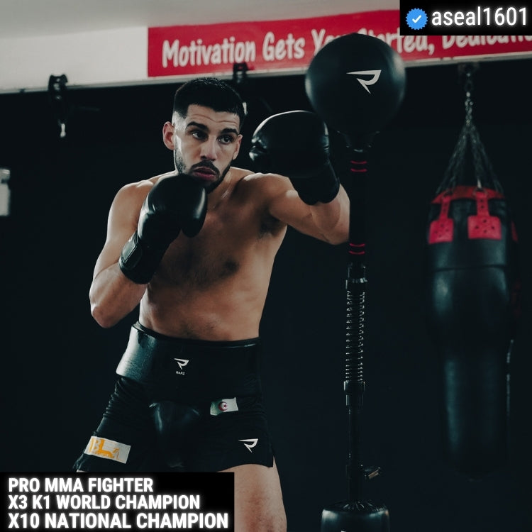 The Rapz Cobra Speed Bag is the next generation of one of the most sought after training tools in combat sports. Designed for maximum performance, it delivers unmatched speed, precision, and durability - making it the ultimate choice for fighters, athletes, and serious trainers. Its freestanding design allows for seamless setup anywhere - at home, in the gym, or even in your office - giving you the flexibility to train on your terms. The shockproof steel spring ensures a lightning-fast rebound after every strike, forcing you to react, sharpen your reflexes, and improve hand-eye coordination with every session. Train harder, react faster, and develop elite-level precision - wherever you are.